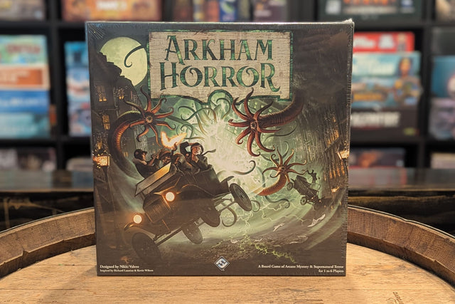 Arkham Horror Third Edition is a cooperative board game for one to six players who take on the role of investigators trying to rid the world of ancient beings known as Ancient Ones in the 1920s. Based on the works of H.P. Lovecraft, players will have to gather clues, defeat terrifying monsters, and find tools and allies to stand any hope of defeating the ancient creatures that exist just beyond the veil of our reality.