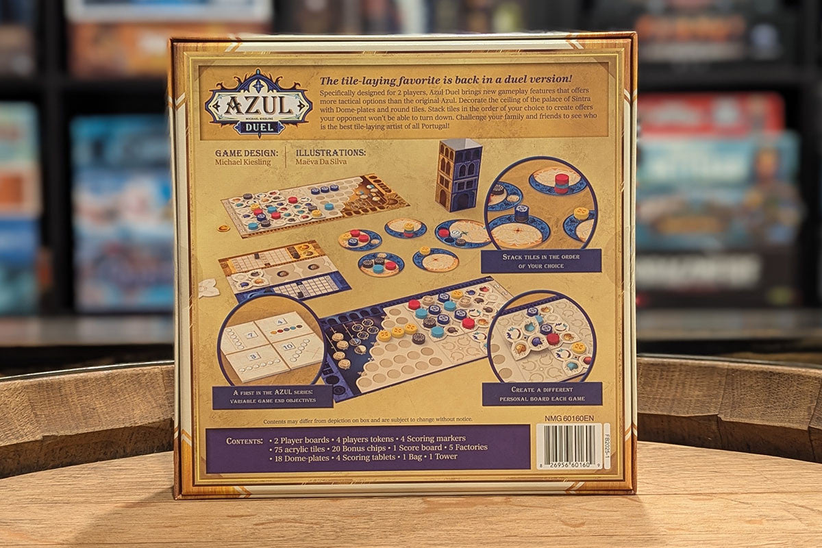 The tile-laying favorite is back in a duel version! Of all the tile-laying artists who have decorated the walls of King Manuel’s palace in Azul, two artists stood out. These two tile-laying masters have been chosen by his majesty to decorate the ceiling of Sintra’s palace. Players will have to show the king in a tile-laying duel, who is the best among the best artists of all Portugal!