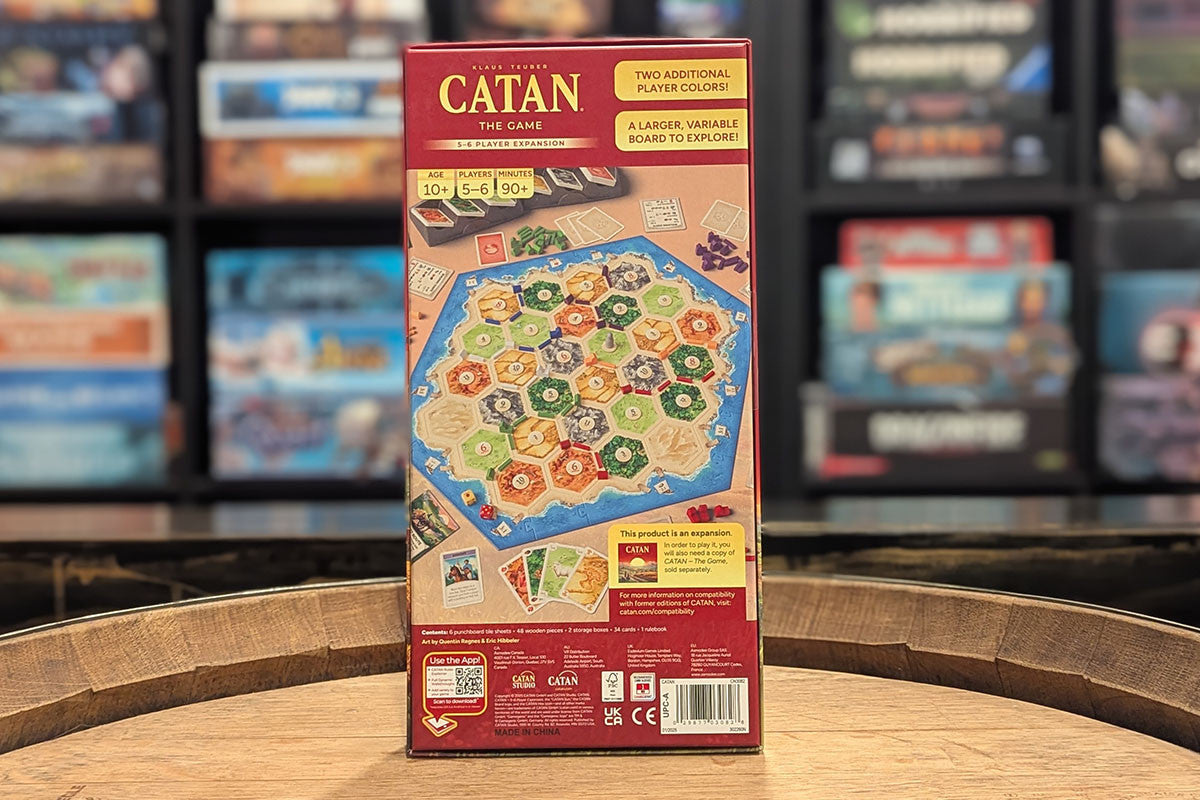 Bring more friends to the island of Catan! Adventures this big deserve to be shared with even more friends. Invite up to two additional players to your CATAN game for even more trading and building fun! The 5-6 Player Expansion adds additional pieces and components for more players and adds a simple turn-taking mechanism to engage more players throughout.