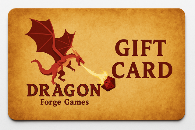 Give the gift of adventure, strategy, and fun! A Dragon Forge Games Gift Card is the perfect choice for the tabletop gamer in your life. Whether they love immersive board games, epic card battles, or collecting premium dice and accessories, our gift cards let them choose exactly what they want.