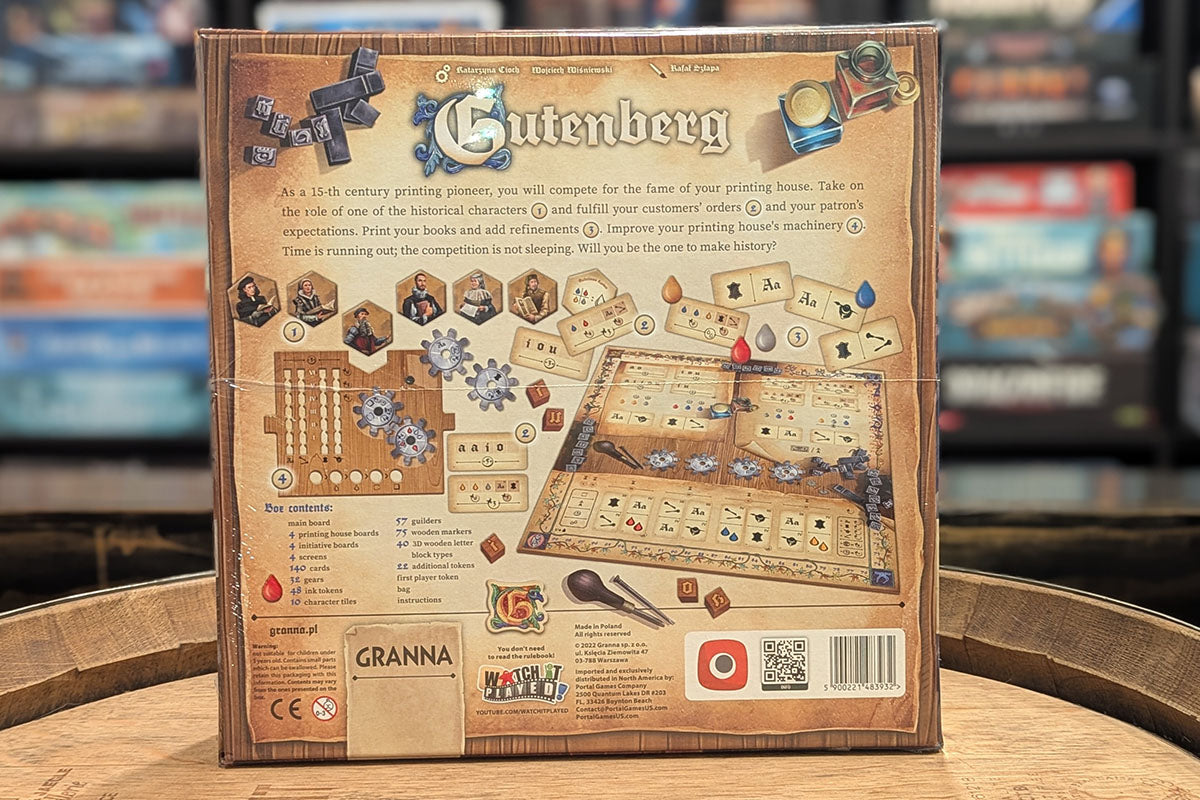 Gutenberg is a board game for 1-4 people in which players will play as the pioneers of printing in the 15th century. By carrying out orders, they will build their wealth and fame. By improving their printing workshops and gaining the support of patrons, they will develop their production capacity. The game will be won by a printer who boasts the greatest recognition and wealth.