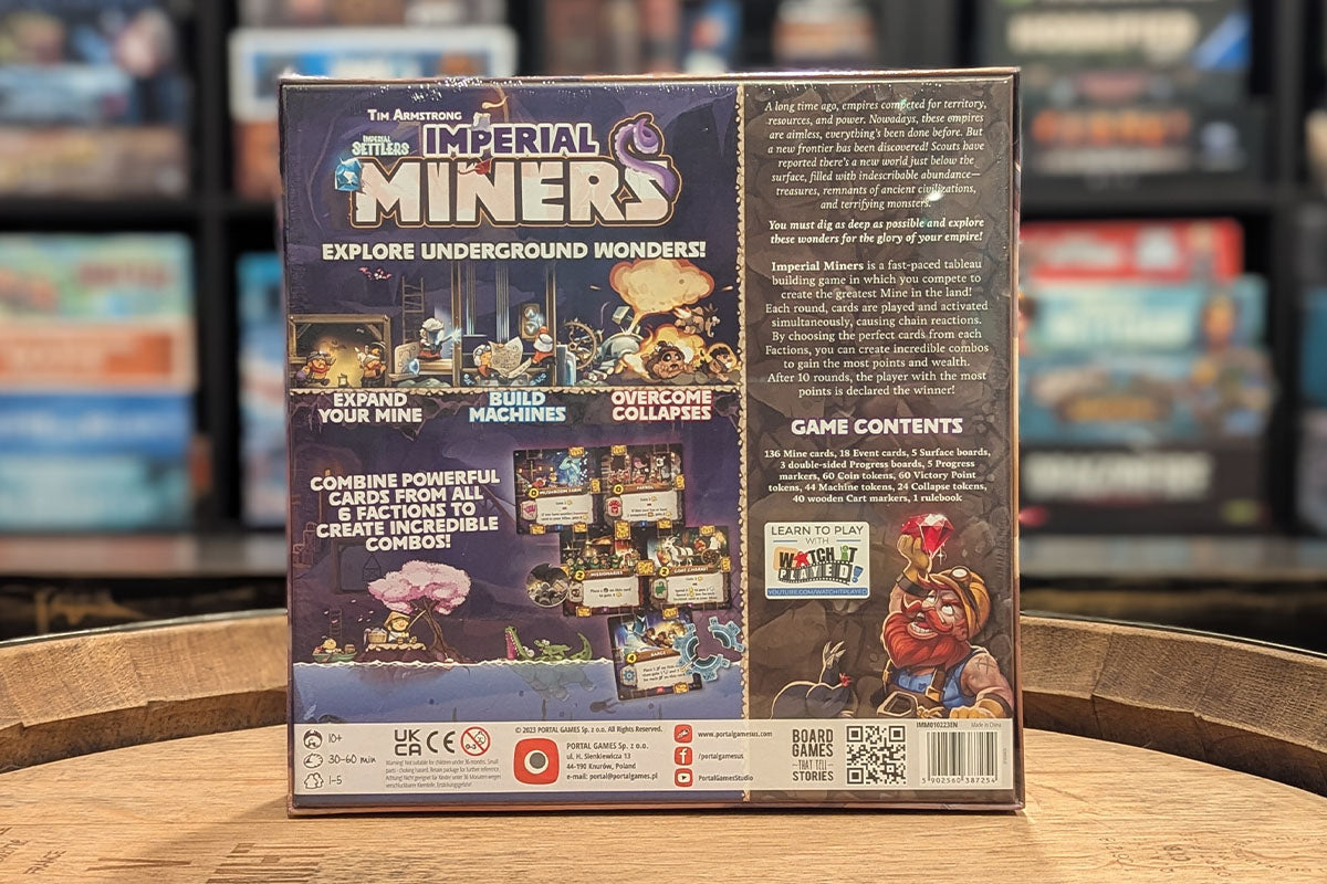 Imperial Miners is a light engine-building card game for 1 to 5 players from designer Tim Armstrong (Arcana Rising, Orbis), in which players excavate mines using a clever card activation system. This stand-alone game is set in the popular Imperial Settlers universe and offers beautiful illustrations, easy-to-grasp rules, and satisfying gameplay full of chain reactions and engine-building synergies.