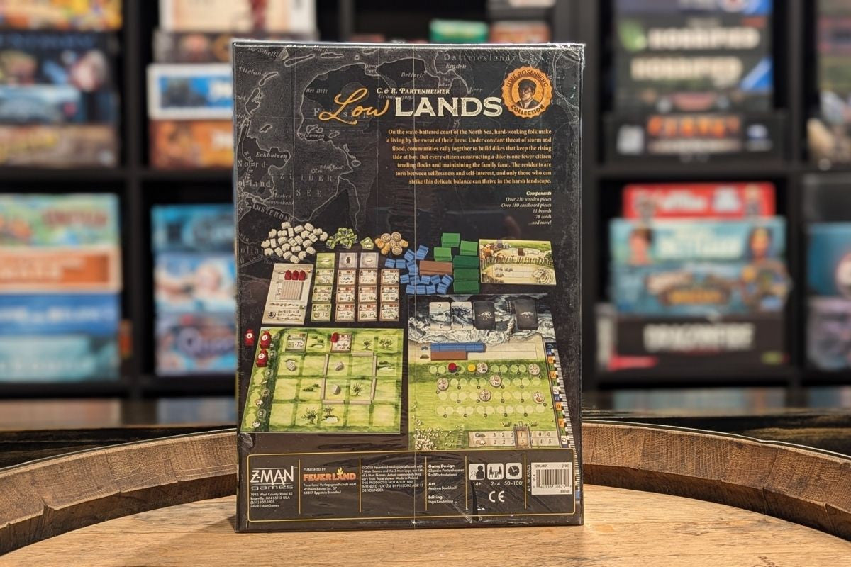 Ominous clouds gather over the wave-battered coast of the North Sea. Under the constant threat of storm and flood, the hard-working folk of this region must decide between rallying together to build dikes that keep the rising tide at bay or to pursue their own self-interest. Take up the challenge and carve your farm out of this rough landscape In Lowlands, a game of farm-building and varying agendas for two to four players.