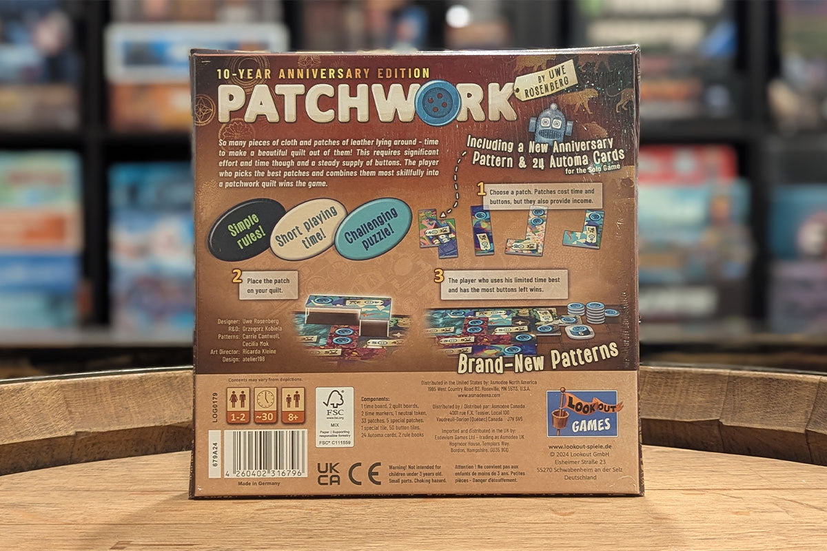 CELEBRATE 10 YEARS OF PATCHWORK: Commemorate the 10th anniversary of the beloved Patchwork game with this special edition, featuring new artwork and exclusive components.