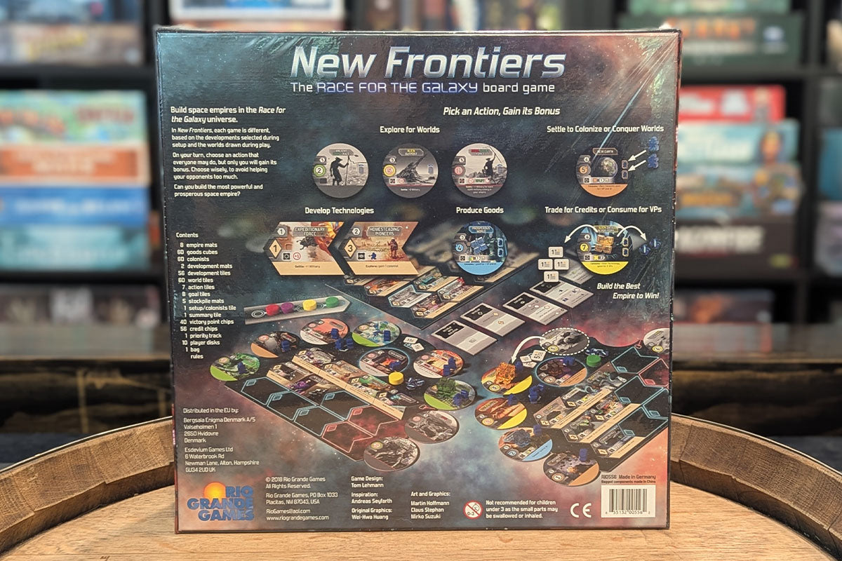 New Frontiers is a board games that is set in the Race for the Galaxy universe. Fans of Race for the Galaxy and Puerto Rico will enjoy this game since it shares elements of both games.