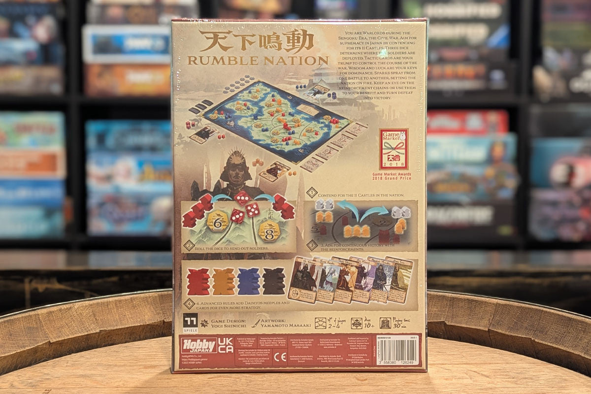 Take control of castles during the Sengoku Era! Roll 3 dice and place your soldiers strategically on the map to try and win a region. Use Tactic or Warlord cards to change the outcome of the game. But beware, nothing is never won or lost in advance!
