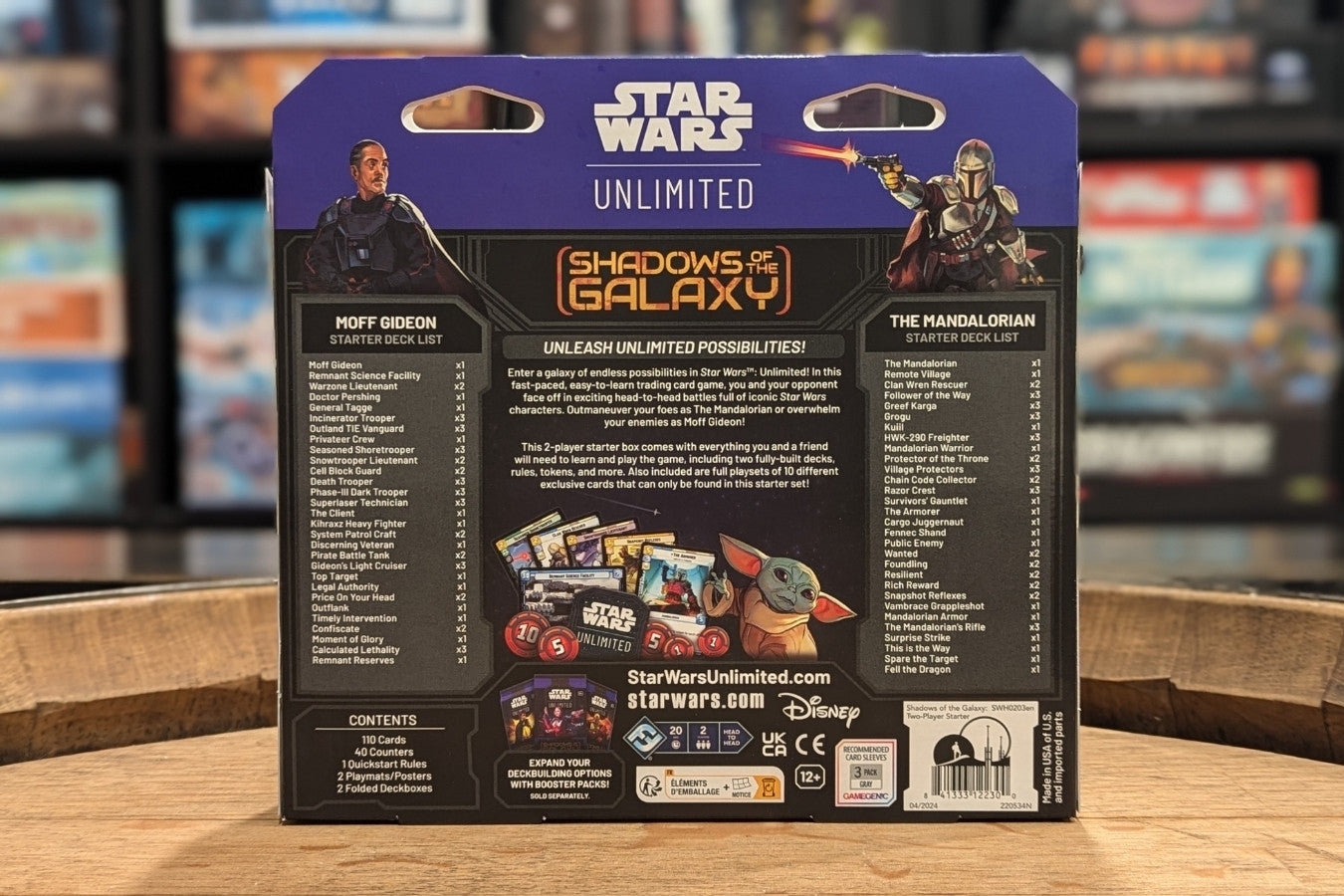 The Shadows of the Galaxy set features characters and content from The Mandalorian™ series, Solo: A Star Wars Story™, The Book of Boba Fett™ series, and more! Once you have learned the game, you can expand your collection with Star Wars: Unlimited booster packs, sold separately.