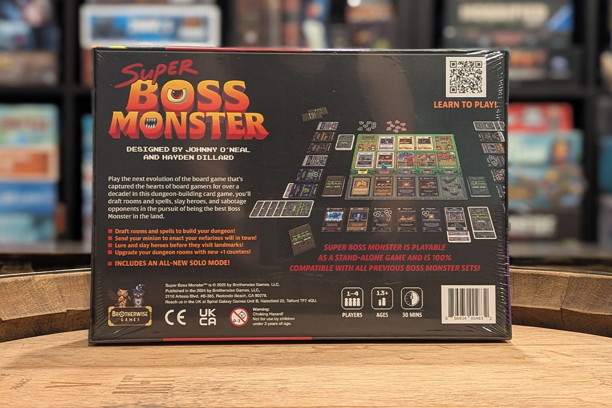 After a decade of dungeon-building fun, Boss Monster is leveling up to the next generation with Super Boss Monster! 1-4 players compete to build the ultimate side-scrolling dungeon by drafting room cards, playing spells, and luring in hapless adventurers.