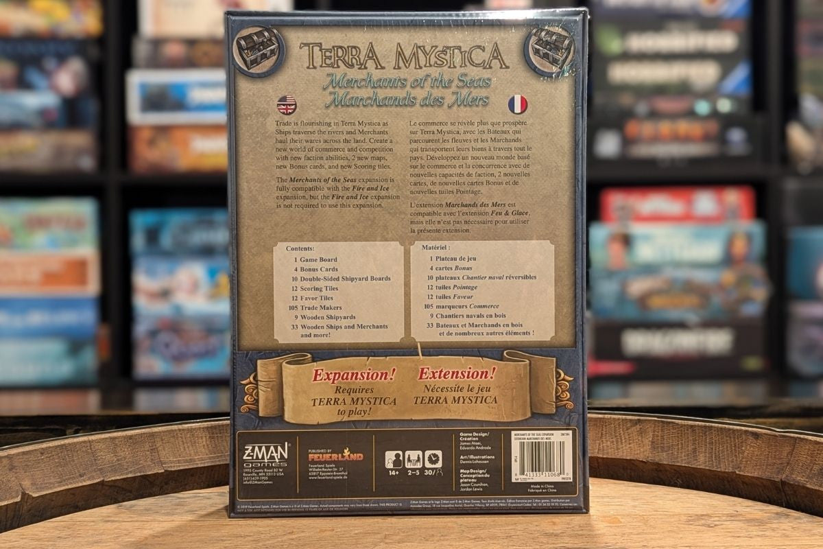 The factions of Terra Mystica have opened their doors for business beyond the trading post in Terra Mystica: Merchants of the Seas. More trade flows between the factions with their brand new ships sailing on the rivers. A new large building, the shipyard, upgrades your shipping or range and produces ships with twenty faction board extensions.