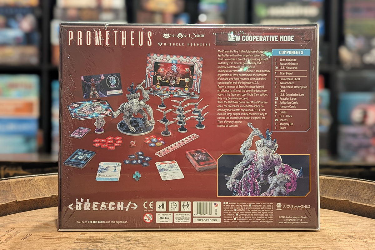 The Prometheus expansion introduces a Cooperative Mode where players can team up to take on the formidable Prometheus. Defeating Prometheus will require the Breachers to deactivate its defenses by gathering the necessary information to disassemble its components. This expansion includes the massive Prometheus as a Titan class Guardian, a new Avatar called NERO, and the rules for a complete cooperative game mode.