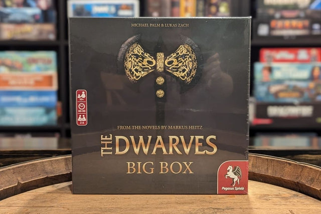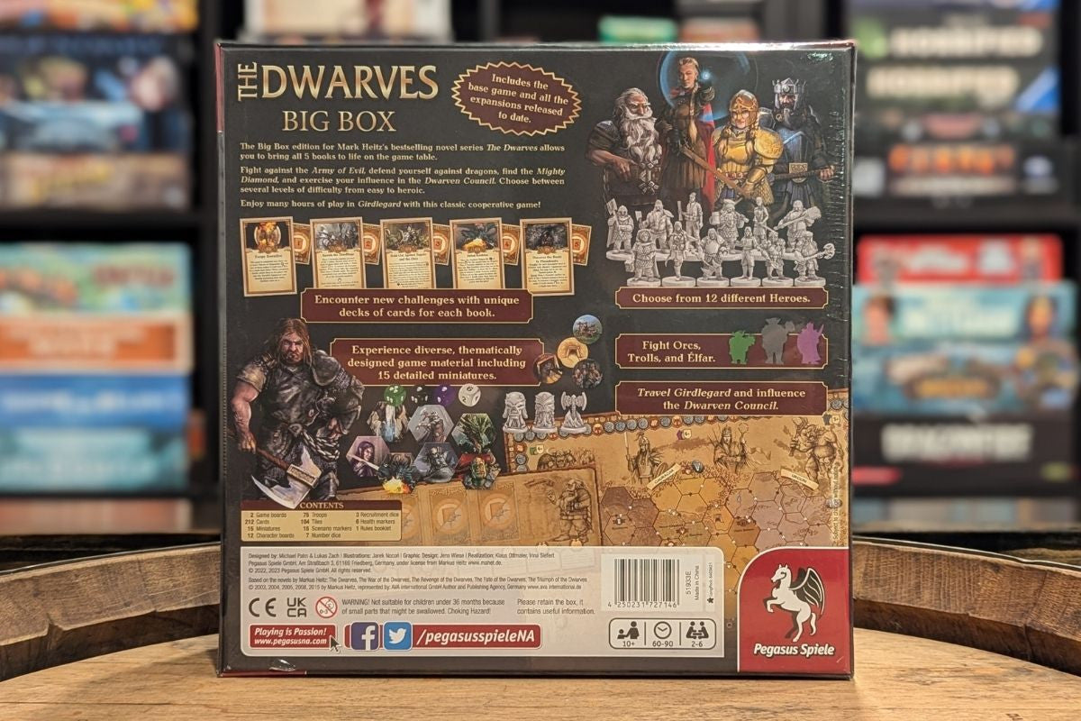 The Dwarves Big Box combines 2012s award-winning base game, the large Saga Expansion, the New Heroes Expansion, the story expansions Combined Might and The Triumph of the Dwarves as well as the Alfar Expansion in one appealing, highly re-playable package.