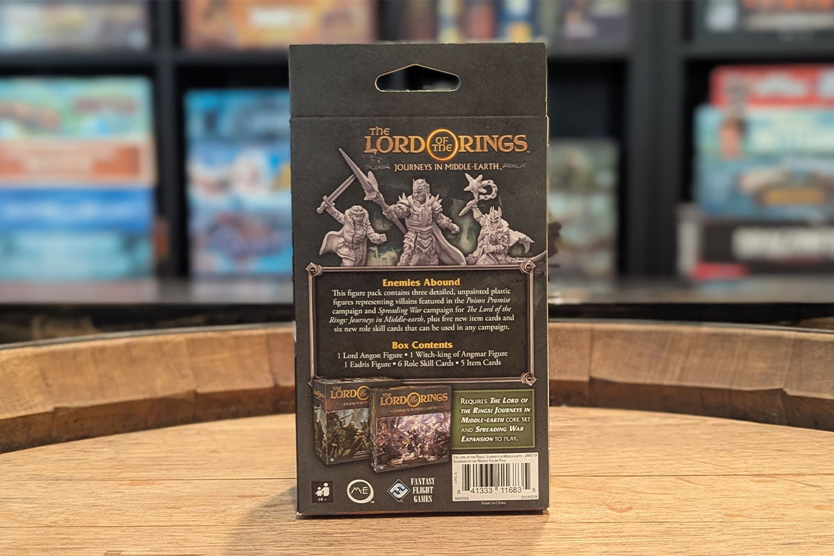 The Scourges of the Wastes Figure Pack for The Lord of the Rings: Journeys in Middle-earth can enhance both the Spreading War campaign and the Poison Promise downloadable campaign. This pack contains three beautifully-sculpted new miniatures of the primary villains of the two campaigns, as well as five new item cards and a new role that can be used in any Journeys in Middle-earth adventure. No collection would be complete without it!