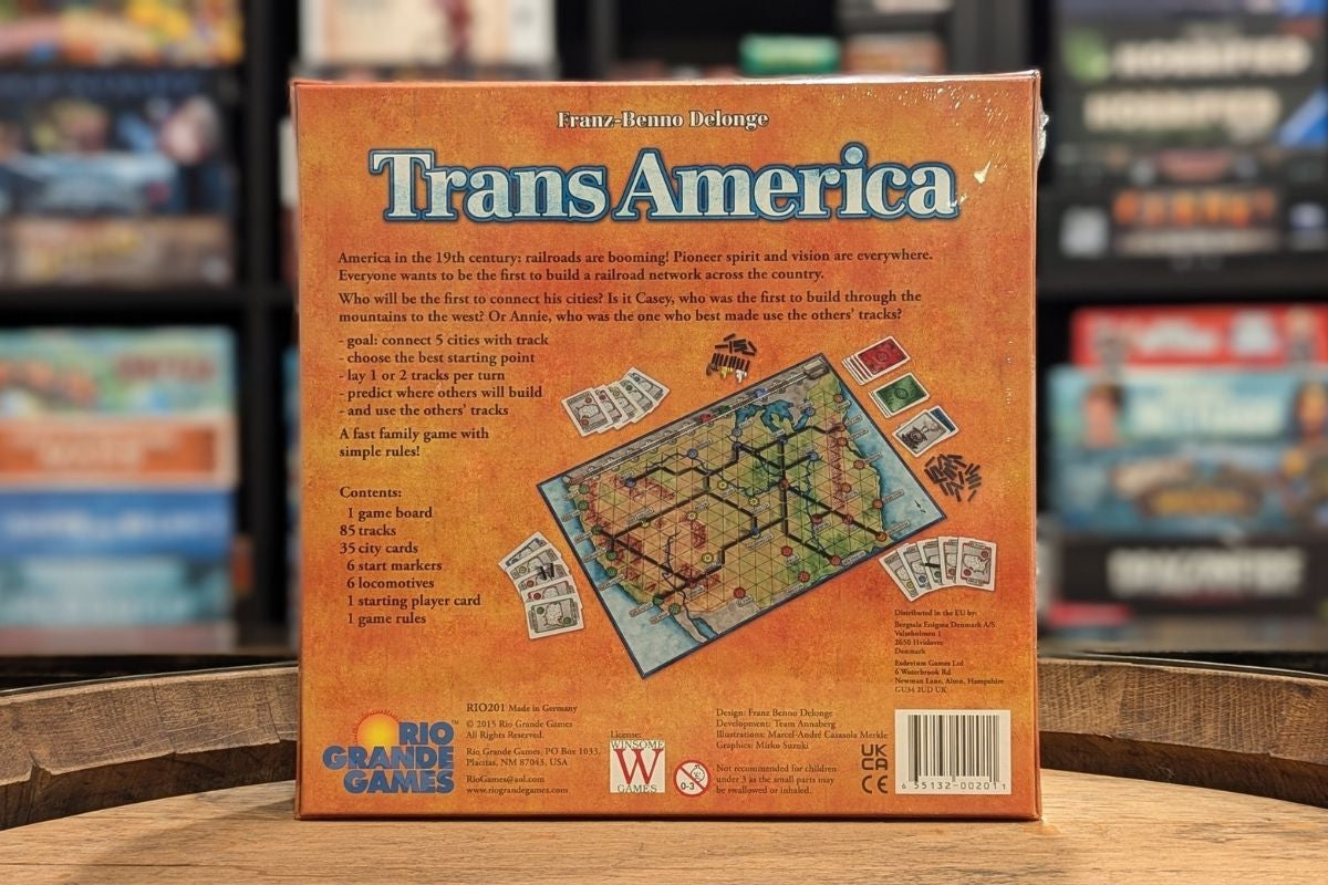 Trans America is a simple railroad game for 2-6 players that plays in less than 30 minutes.