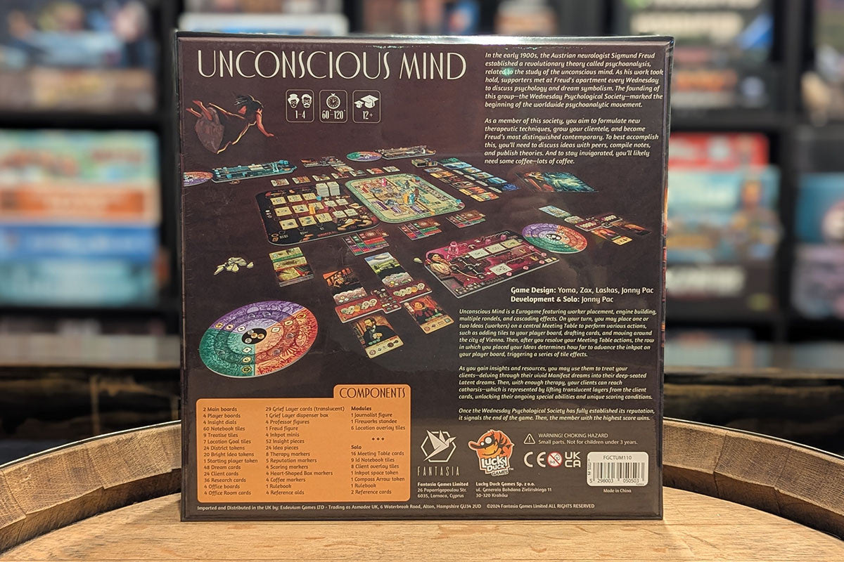 - Unconscious Mind is a euro-style game featuring worker placement, engine building, multiple rondels, and cascading effects.