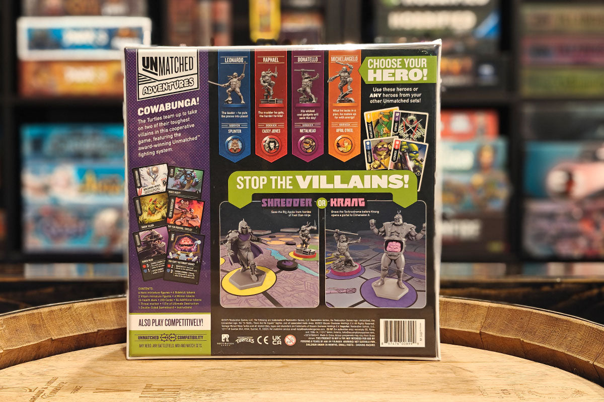 Unmatched is the best-selling, award-winning game of fast fights between unlikely opponents. Now you’re the Heroes in the Half Shell, teaming up to take on two of their most terrifying villains and their gang of meddlesome minions.