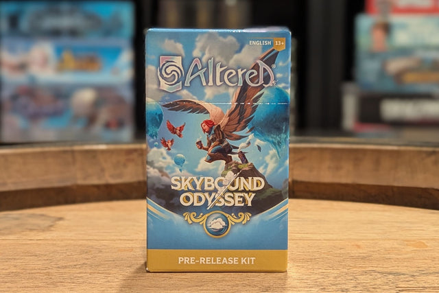 RISE TO NEW HEIGHTS As they emerge from the City of Scholars, the expedition forces discover that a prodigious beam of light has appeared on the horizon. Between them and the beacon lies a vast sea of clouds, home to an archipelago of flying islands and titanic leviathans that threaten their progress. Rise to new heights and take your expeditions aboard flying ships on an odyssey through the sky. Pre-release kits are boxed sets filled with everything players need to discover a new expansion in stores. With 7 Skybound Odyssey booster packs, a deckbuilding guide and a set of premium adventure cards, players will be all set to dive into the game!