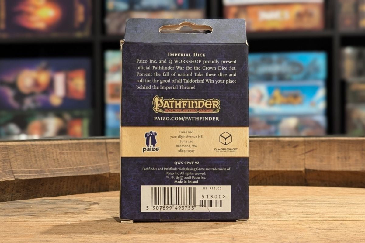 Paizo Inc. and Q-workshop proudly present official Pathfinder War for the Crown Dice Set. Prevent the fall of nation! Take these dice and roll for the good of all Taldorian! Win your place behind the Imperial Throne!